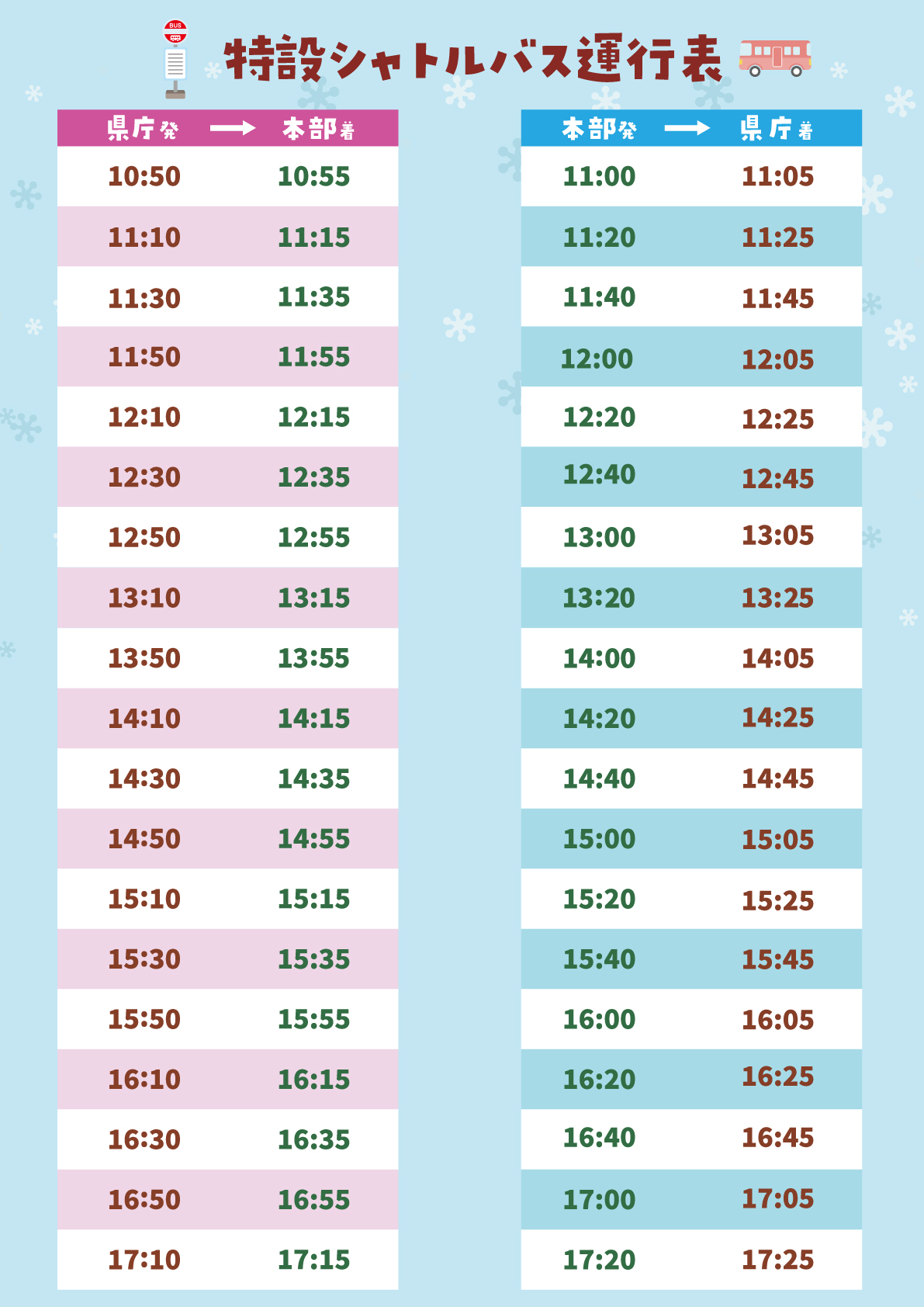 ▼当日は県庁⇔イベント会場のシャトルバスが運行!
